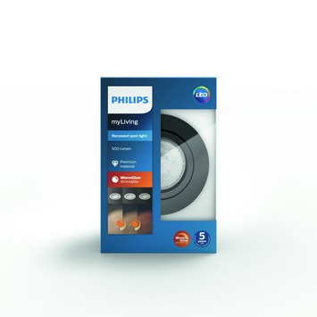 De Philips Shellbark inbouwspot met geïntegreerde led van 4,5 watt of 500 lumen maakt deel uit van de nieuwe generatie smartspots die duurzaam, richtbaar en dimbaar zijn. Deze ronde spot heeft een modern design uit kunststof in de kleur donkergrijs en past in bijna elke ruimte als subtiele accentverlichting. Ook verkrijgbaar in de webshop van GAMMA in andere vormen en kleuren.