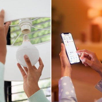 Haal de perfecte sfeer in huis met de ronde bolle vorm van deze gekleurde Philips Smart LED lamp met E27-fitting. De lamp is eenvoudig te bedienen via de WiZ app. Zo kun je de lampen gemakkelijk dimmen, feller zetten of één van de voorgeprogrammeerde lichtscènes kiezen. Gebruik ritmes om je lampen op bepaalde tijden automatisch van wittint of kleur te laten veranderen. Je kunt de ritmes naar wens aanpassen door verschillende dynamische lichtscènes te combineren. Wat dacht je van lampen die doen denken aan knus kaarslicht, een groene jungle of een kleurrijke herfstdag? Gemakkelijk te bedienen via je eigen wifinetwerk met de WiZ app of je stem.