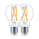 Verlicht je huis slim met deze twee trendy Philips Smart LED filamentlampen met een grote E27-fitting. Je kunt zelf instellen of de lampen warm- of koelwit licht geven. De lamp is eenvoudig te bedienen via de WiZ app. Dim de lampen, zet ze feller of kies één van de voorgeprogrammeerde lichtscènes. Stel bijvoorbeeld een 24-uurs ritme in en word wakker met koel licht om met wat extra energie aan de dag te beginnen. 's Avonds laat wordt het licht automatisch wat warmer, zodat je lekker ontspannen onder de wol kunt kruipen. Ontdek nog veel meer ritmes en scènes, waar je elke dag wat aan hebt. Gemakkelijk te bedienen via je eigen wifinetwerk met de WiZ app of je stem.