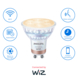Maak de standaard inbouwlampen en spotjes in je huis slim met de aangename gloed van de Philips Smart LED GU10-spot, die je kunt instellen van warm- tot koelwit licht. Bedien de lamp via de WiZ app, en zorg dat je altijd het juiste licht hebt. Dim de lamp, zet hem feller of kies één van de voorgeprogrammeerde lichtscènes. Stel bijvoorbeeld een 24-uurs ritme in en word wakker met koel licht om met wat extra energie aan de dag te beginnen. 's Avonds laat wordt het licht automatisch wat warmer, zodat je lekker ontspannen onder de wol kunt kruipen. De spots hebben nu een verbeterd ontwerp; het kunststof kapje is vervangen door glas, wat zorgt voor een betere fit en een mooiere uitstraling. Gemakkelijk te bedienen via je eigen wifinetwerk met de WiZ app of je stem.