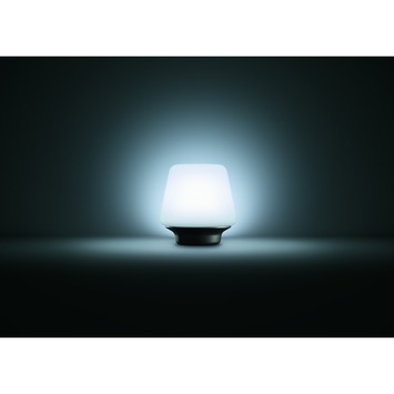 De wit-zwarte Hue Welness tafellamp van Philips beschikt over een led van 5,5 watt of 806 lumen. Deze moderne, multifunctionele en originele tafellamp kan je moeiteloos aansluiten op je Hue-systeem en zorgt zo voor extra licht en sfeer. Het natuurlijk witte licht van deze dimbare tafellamp, die je ook als bureaulamp of vloerlamp kan gebruiken, helpt je daarenboven om te ontwaken, energieker te worden, te focussen, te lezen en te ontspannen. Inclusief lichtbron, exclusief bridge en schakelaar. Beide kan je apart kopen in de winkel of de webshop van GAMMA. Goed om te weten: Hue is slimme, energiezuinige verlichting van Philips voor in heel je huis. Deze ledverlichting maakt het mogelijk om je verlichting wireless te bedienen via een gratis app op je smartphone of tablet. Op die manier kan je, ook vanop afstand, de verlichting in alle kamers van je huis afstemmen op jouw persoonlijke voorkeur en behoefte.