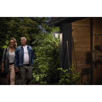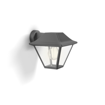 Voeg buiten een vleugje vintage toe met deze antraciete, aluminium muurlamp van Philips. De glazen diffuser en het retro-ontwerp roepen een stijlvolle sfeer op die perfect past bij jouw persoonlijke stijl. Door het open karakter van deze buitenlamp komt een filament Philips LED-lamp goed tot zijn recht. Altijd mooi, zowel aan als uit.