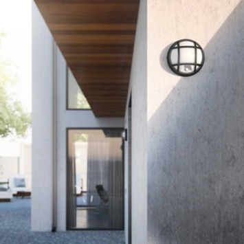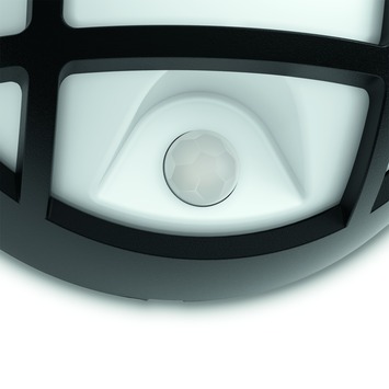 Philips heeft een verlichtingsarmatuur voor elke ruimte. De buitenverlichting bestaat uit eigentijdse maar duurzame modellen, zoals deze Eagle wandlamp met een rooster en een geïntegreerde ledlamp van 3,5 watt. De lamp heeft een rond design uit zwarte aluminium.