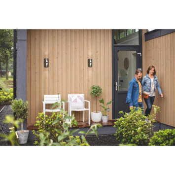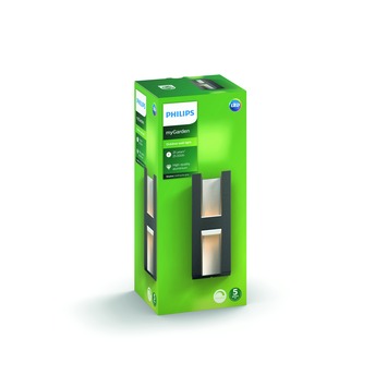 De Shadow wandlamp van MyGarden by Philips is gemaakt uit gegoten aluminium in de kleur grijs en voorziet je buitenmuren van mooi licht, zowel langs onder als langs boven. De wandlamp beschikt over 2 geïntegreerde leds van 4,5 watt en een hoog IP-niveau (nl. IP44). Die waarde geeft aan dat deze spatwaterdichte buitenverlichting best tegen een stootje kan! Meer nog: je kan de lichtintensiteit van deze lamp zelfs aanpassen aan met een dimmer (niet meegeleverd). Zo kan je een bepaald object accentueren of de sfeer aanpassen aan elke gelegenheid. Wat dacht je van een romantisch diner voor twee ... of toch liever een gezellige avond met familie en vrienden?