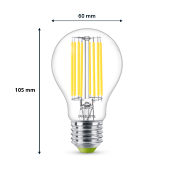 Verlicht je huis met onze meest energiezuinige lamp ooit, de peervormige Philips LED filamentlamp met energielabel A. Door 60% minder energieverbruik én een 3,5x langere levensduur dan de gemiddelde LED-lamp bespaar je nóg meer kosten op je energierekening. Omdat deze lamp tot 50 jaar meegaat verspil je ook minder materiaal waardoor je eenvoudig bijdraagt aan een beter klimaat; met LED kan het!