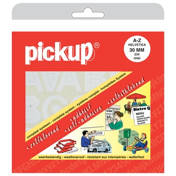 Pickup plakletter A-Z wit 30mm plak je eenvoudig op elk glad oppervlak. Het meegeleverde siliconenvel met ruitjes help je de letters netjes recht te plaatsen. Hierdoor plak je nooit scheef. In de verpakking vind je ook een zelfklevend strookje. Hiermee breng je de letters simpel aan op het voorwerp dat je wilt beplakken. Pickup plakletter A-Z wit 30mm hecht uitstekend en toch zijn de stickers goed te verwijderen zonder vervelende lijmresten achter te laten. Kortom, Pickup plakletter A-Z wit 30mm is een prima keuze voor kantoor, thuis, hobby en decoratieve uitingen.