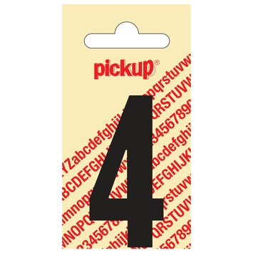 Het Pickup plakcijfer 4 zwart mat 60mm is een zelfklevende sticker met het cijfer 4. De Pickup stickers zijn zelfklevend, maar ook goed te verwijderen zonder lijmresten achter te laten. Je kan deze plakletter zowel binnen als buiten gebruiken op een glad oppervlak. De Pickup plakletters en -cijfers zijn leverbaar in verschillende kleuren en maten. Niet alleen ter verduidelijking op werk of thuis, maar ook leuk als decoratie. Met het matzwarte Pickup plakcijfer 4 heb je een duidelijk, goed leesbaar cijfer dat je op elk gewenst glad oppervlak kunt plakken. Afmetingen: 60mm.