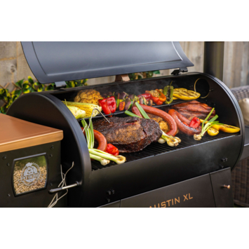 De Pit Boss Austin XL houtpellet BBQ Onyx zwart 6503 cm² geeft je veel plaats om tegelijk te grillen, roken of bakken. Met een kookoppervlak van 6.503 cm² kan je verschillende gerechten samen bereiden. De barbecue heeft twee grillniveaus met porselein gecoate stalen roosters. Zo kan je vlees, vis en groenten makkelijk gescheiden bereiden.