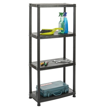 Dit rek is gemaakt van stevig kunststof. Het is vochtbestendig en daarom ideaal om in de schuur of garage te plaatsen.