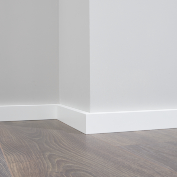 Om je interieur met laminaat of parket netjes af te werken, kan je plinten plaatsen. Zo verberg je de naad tussen de vloer en de wand en maak je een mooie overgang. Kies voor een plint met een decor of een witte plint. Deze blokplint uit mdf in de kleur wit is 19 millimeter dik, 58 millimeter hoog en 240 centimeter lang. Ook verkrijgbaar in andere afmetingen en kleuren.