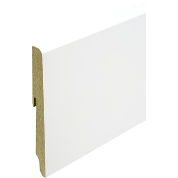 Om je interieur met laminaat of parket netjes af te werken, kan je plinten plaatsen. Zo verberg je de naad tussen de vloer en de wand en maak je een mooie overgang. Kies voor een plint met een decor of een witte plint. Deze schuine plint uit mdf in de kleur wit is 16 millimeter dik, 12 centimeter hoog en 240 centimeter lang. Ook verkrijgbaar in andere afmetingen en kleuren.