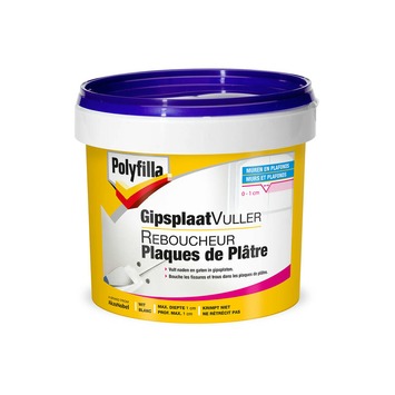 De gipsplaatvuller in de kleur wit (1 liter) van Polyfilla is geschikt voor het vullen van gaatjes en naden in je gipsplaten. Verkrijgbaar in vloeibare vorm en poedervorm. Deze vuller is vloeibaar.