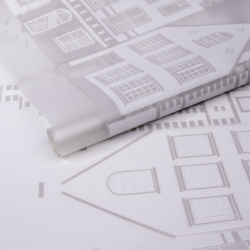 Mooie folie met leuk effect naar binnen en buiten toe. Houdt rekening dat de print op de verschillende rollen niet aansluitend is.