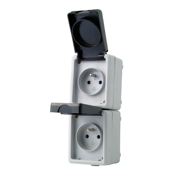 Bij iedere stekker past een stopcontact. Misschien is het dit dubbele opbouw stopcontact in de kleur grijs van Profile wel? Inclusief veiligheidsklepjes.