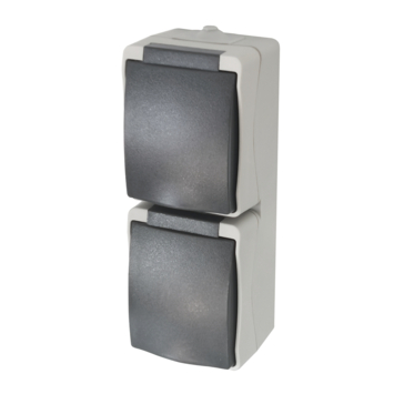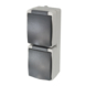 Profile opbouwstopcontact 2-polig met aarding 2-voudig verticaal spatwaterdicht grijs