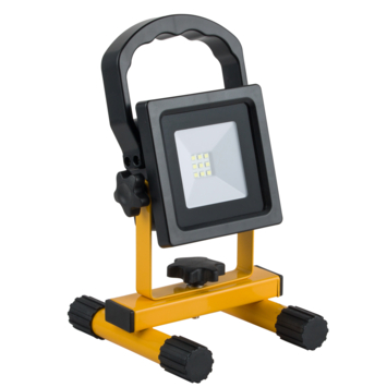 Oplaadbare straler met handvat en voet. De straler heeft een vermogen van 10W en geeft een koud wit licht van 600 lumen af. De straler beschikt over een oplaadbare batterij en is dus ultramobiel. Ideaal om moeilijk bereikbare of krappe ruimtes (bij) te verlichten.