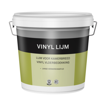PVC-lijm vinyl kamerbreed lijm is een krachtig oplosmiddelvrije en emmissie-arme dispersielijm. De lijm kan toegepast worden voor natte/half natte, droge en contactverlijming. PVC stroken, vinyl kamerbreed en tegels dienen nat/halfnat verlijmd te worden maximale strook lengte 170cm en tegels tot 95 x 95cm. Toepassing is alleen voor binnen.