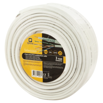 De combikabel van Q-link bestaat uit een coax- en een UTP-kabel. De kabel is 25 meter lang en heeft een wit omhulsel. Tip: is deze kabel niet de kabel die je zoekt? Don't worry, be happy want we hebben nog heel wat andere kabels in onze (web)shop.