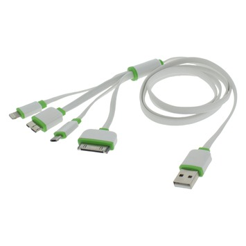 De multi laadsnoer voor het verbinden van alle smartphones met een computer. De lengte van de kabel is 150 cm. Snoer is alleen geschikt voor het laden van een smartphone