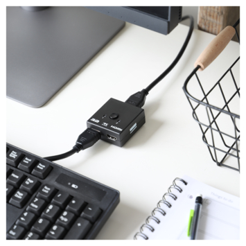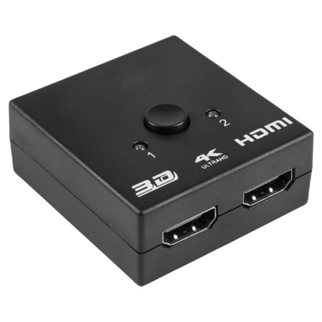 Met deze tweerichtings HMDI-schakelaar kan je twee toestellen op één HDMI-poort aansluiten en met een druk op de knop schakelen tussen beide toestellen.