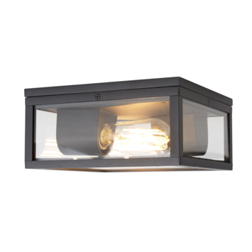 De QAZQA plafondlamp voor buiten Charlois 2-lichts 40W E27 zwart aluminium is een strakke plafondlamp waarmee je zowel binnen als buiten een sfeervolle verlichting creëert. Het armatuur is gemaakt van zwart aluminium met kunststof en heeft een vierkante vorm waardoor hij een moderne uitstraling geeft. Met een hoogte van 11,5 centimeter en een lengte en breedte van 24 centimeter past hij goed op terrassen, overkappingen of in vochtige ruimtes zoals de badkamer.