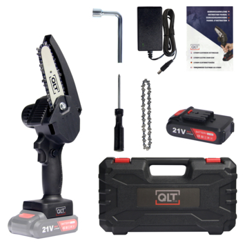 De tijd van met de hand snoeien is voorbij met de QLT mini kettingzaag, zaag zo moeiteloos dikke takken of stammen door. Het lichte gewicht en rubberen handvat zorgt voor een eenvoudige bediening. De meegeleverde lithium accu van 3000 mAh zorgt ervoor dat takken tot wel 16 cm dik kunnen worden doorgezaagd. Voor de veiligheid bevat de kettingzaag een veiligheids lock en handbescherming. Kortom zagen doe je veilig!