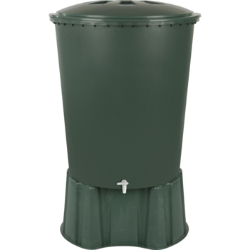 Deze regenton groen conisch 310 liter wordt zeer veel verkocht omdat hij voordelig is en toch een grote inhoud heeft. Daarmee kun je aardig wat planten goedkoop water geven. De ton heeft een kindveilig deksel en een witte aftapkraan die je ook op een tuinslang kunt aansluiten. De conische, groene regenton heeft een diameter van 79 centimeter, een hoogte van 93 centimeter en een inhoud van 310 liter. Het materiaal van de waterton is vrijwel onverwoestbaar. Vorst, regen en dergelijke weersomstandigheden hebben geen vat op deze regenton, wel dien je de regenton leeg te maken bij vriestemperaturen. Daarnaast bestaat de ton voor 100% uit gerecycleerde plastic en krijg je 1 jaar fabrieksgarantie. Plaats voor extra hoogte een regentonvoet onder de regenton zodat je gemakkelijk met een emmer het water uit de kraan kan halen.