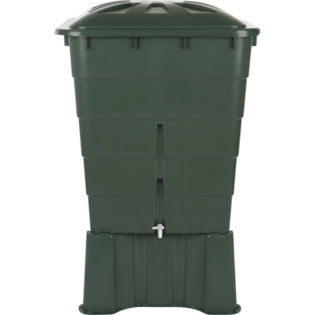 Deze Garantia rechthoekige regenton heeft een inhoud van 300 liter. Daarmee kun je aardig wat planten goedkoop water geven. De ton heeft een kindveilig deksel en een witte aftapkraan die je ook op een tuinslang kunt aansluiten. Deze vierkante, groene regenton is compact en kan gemakkelijk tegen een muur geplaatst worden. De regenton heeft een breedte van 80 centimeter, een hoogte van 92 centimeter en een inhoud van 300 liter. Het materiaal van de waterton is vrijwel onverwoestbaar. Vorst, regen en dergelijke weersomstandigheden hebben geen vat op deze regenton, wel dien je de regenton leeg te maken bij vriestemperaturen. Daarnaast bestaat de ton voor 75% uit gerecycleerde plastic en krijg je 10 jaar fabrieksgarantie. Plaats voor extra hoogte een regentonvoet onder de regenton zodat je gemakkelijk met een emmer het water uit de kraan kan halen.