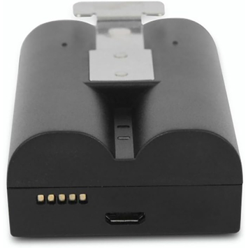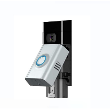Als de batterij van je Ring-apparaat bijna leeg is, kun je met een extra verwisselbare batterij de oude direct vervangen. Om te vervangen en de bijna lege batterij weer op te laden, druk je op het lipje, haal je de batterij uit je apparaat, en sluit je deze met een USB-kabel aan op stroom.