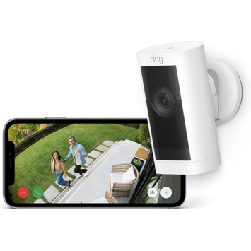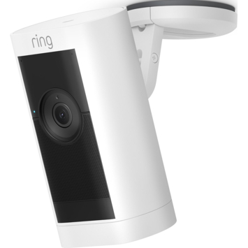 Ring Stick Up Cam Pro Battery Wit: Veelzijdige beveiligingscamera voor buiten met 1080p HDR-video, 3D-bewegingsdetectie en zicht vanuit vogelperspectief Professionele beveiliging, voor binnen of buiten. Voeg buitenshuis beveiliging toe met de veelzijdige Pro-versie van de beveiligingscamera voor buiten. Houd je terras in de gaten met 3D-bewegingsdetectie en nachtzicht in kleur, of houd op afstand een oogje in het zeil met HDR-video en verbeterde tweerichtingsspraak.