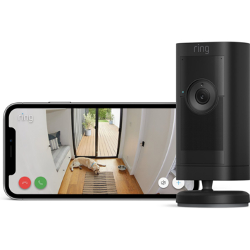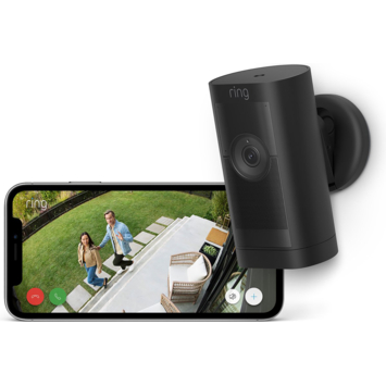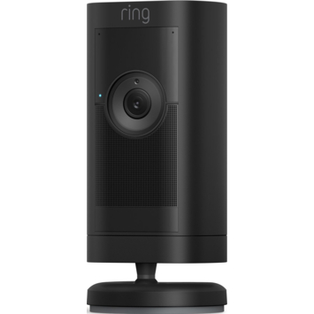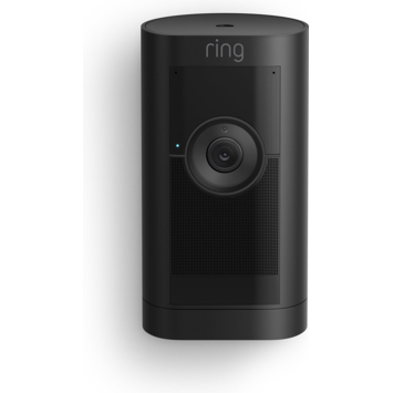 Ring Stick Up Cam Pro Battery Zwart: Veelzijdige beveiligingscamera voor buiten met 1080p HDR-video, 3D-bewegingsdetectie en zicht vanuit vogelperspectief Professionele beveiliging, voor binnen of buiten. Voeg buitenshuis beveiliging toe met de veelzijdige Pro-versie van de beveiligingscamera voor buiten. Houd je terras in de gaten met 3D-bewegingsdetectie en nachtzicht in kleur, of houd op afstand een oogje in het zeil met HDR-video en verbeterde tweerichtingsspraak.