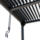 De Pergola Rodrigo aluminium antraciet 300 x 300 x 231 cm is uitgerust met een schutterdak met draaibare lamellen. Met de draaistang kan je het dak open of dicht zetten. Gesloten lamellen zorgen voor beschutting tegen zon en zijn spatwaterdicht bij regen. De twee dakdelen zijn apart verstelbaar.