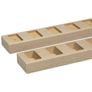 Het Roomdivider profiel recht 90° natuur eiken 2 stuks vormt de boven- en onderzijde van een CanDo roomdivider. Deze profielen dienen als rails waarin de spijlen stevig vastzitten. Je plaatst het ene profiel op de vloer en het andere aan het plafond zodat de lamellen mooi recht en stabiel blijven staan. De natuur eiken afwerking sluit perfect aan bij de bijhorende spijlen en zorgt voor een nette en verzorgde afwerking van de wand.