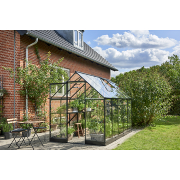 Deze kas kan gebruikt worden voor het kweken van fruit en groente of voor het creëren van een extra buitenruimte.