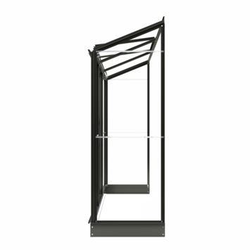Met de Emma II muurserre van Royal Well voeg je een stijlvolle en praktische oplossing toe aan je tuin, balkon of terras. Deze serre, in een chique groengrijze kleur, biedt de perfecte ruimte om verse kruiden en groenten te kweken, zelfs als je niet veel plek hebt. Het ontwerp is geschikt voor zowel beginnende als ervaren kwekers. Het 3 mm veiligheidsglas zorgt voor een veilige en stevige omgeving voor je planten, en de luxe uitstraling wordt versterkt door de beglazingsstrips die in dezelfde kleur als het frame zijn uitgevoerd. De bijgeleverde stevige fundering zorgt ervoor dat de serre goed en stabiel staat. Voor een optimale luchtcirculatie zijn er een enkele schuifdeur en een dakraam met uitzetijzer, zodat je planten altijd voldoende frisse lucht krijgen. De Emma II is de ideale keuze voor iedereen die wil kweken, ongeacht de ruimte die je tot je beschikking hebt.