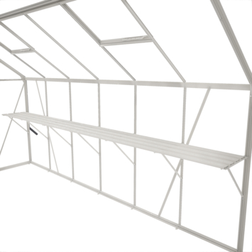 Maak je kas compleet met de witte kweektafel voor serre Mary IV! Deze tafel is ideaal voor al je tuinwerkzaamheden, zoals zaaien, verpotten en watergeven. Geen last meer van door de knieën gaan of op de grond zitten, want door de instelbare hoogte kun je altijd op de perfecte werkhoogte staan. Of je nu een klein of groot project aanpakt, deze kweektafel past in elke kasmaat en biedt genoeg ruimte om alles binnen handbereik te houden. De stevige constructie met vier leggers, dragers en schoren zorgt ervoor dat je potten en gereedschap veilig opgeborgen blijven. Met een diepte van 42,5 cm vult de tafel je kas perfect aan. Deze praktische en stijlvolle kweektafel maakt je tuinervaring nóg prettiger!