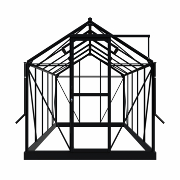 De Royal Well Mary III serre in zwart is de perfecte keuze voor iedere tuinliefhebber. Met een binnenoppervlakte van 7,63 m² biedt deze serre genoeg ruimte om al je planten en kruiden te laten groeien. Het strakke ontwerp met een zadeldak en schuifdeur met haakslot maakt de serre zowel functioneel als een eyecatcher in je tuin. Het 3 mm dikke veiligheidsglas beschermt je planten optimaal, terwijl de stevige aluminium constructie zorgt voor een lange levensduur. De vier dakramen zorgen voor uitstekende ventilatie, wat cruciaal is voor de gezonde groei van je planten. De serre wordt geleverd met een robuuste fundering, die geschikt is voor elke ondergrond. Of je nu een ervaren tuinier bent of net begint, de Royal Well Mary III maakt het kweken van je favoriete planten een stuk makkelijker en plezieriger!