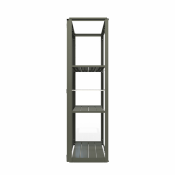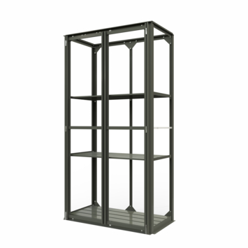 Kweek slim en stijlvol met de Urban Grower large van Royal Well. Deze hoge kweekkast (141,5 cm) is ideaal voor kleine tuinen of balkons. De kast heeft een stabiel aluminium frame, afgewerkt in grijsgroen, en is voorzien van heldere polycarbonaat panelen van 3 mm dik. Dat materiaal is lichtdoorlatend én veilig in gebruik. Aan de voorkant zitten twee openslaande deuren, aan de bovenkant een dakraam dat je open kunt zetten om te luchten. Binnenin vind je handige schappen die je eenvoudig op een andere plek zet, afhankelijk van wat je kweekt.