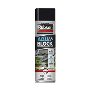 Zoek je een beschermende en rubbercoating om lekken en scheuren mee te dichten? Dan heb je de Rubson AquaBlock spray nodig. Deze zwarte coating is eenvoudig aan te brengen, snel droog en al na 20-30 minuten kleefvrij. Na slechts 24 uur kun je de rubbercoating overschilderen in je gewenste kleur. Dankzij de perfecte dekking en corrosie- en vochtbestendigheid, is deze coating geschikt voor buitengebruik. Te gebruiken op materialen als: metaal, aluminium, PVC, beton, metselwerk, bitumen, vinyl, glasweefsel en vele soorten plastic. Kortom: het ideale product voor permanente waterafdichting.