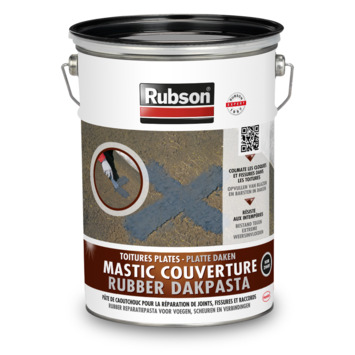 Rubber Dak Pasta in de kleur zwart (2 liter) van Rubson is een pasta die de voegen, scheuren en verbindingen van je dak herstelt én langdurig beschermt tegen UV, lekken en scheuren. Ook verkrijgbaar in andere kleuren en hoeveelheden.