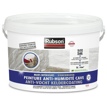 Vochtige keldermuren in de kleur wit (5 liter) van Rubson beschermt je keldermuren langdurig tegen vocht. De solventarme oplossing legt namelijk een vochtscherm op je vochtige muren, waardoor aantasting door vocht geen kans meer krijgt. Bekijk het als een goede regenjas of paraplu, waarop regendruppels gewoon liggen te blinken ... Ook verkrijgbaar in andere hoeveelheden.