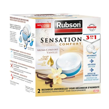 Deze comfort tab met vanillegeur is geschikt als navulling voor je Rubson vochtopnemer. De tab neemt niet alleen overtollig vocht op, maar ook nare geurtjes. Daarnaast zorgt de tab voor een subtiel verfrissend geurtje, waardoor het nog aangenamer thuiskomen wordt.