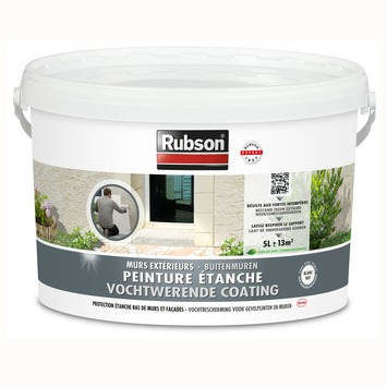 De vochtwerende coating van Rubson (5 liter) biedt langdurige vochtbescherming voor gevels en plinten. De witte coating is bestand tegen extreme weersomstandigheden, maar laat je gevel ademen. Zonder oplosmiddelen.