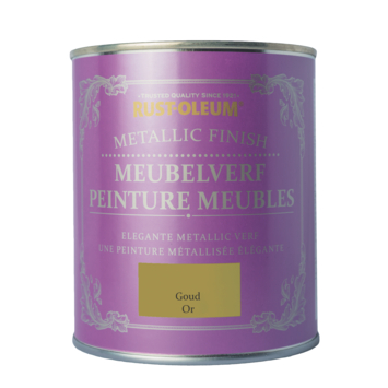 Rust-oleum Meubelverf Metallic goud 750 ml is perfect om meubels een nieuwe uitstraling te geven. De verf mag rechtstreeks op hout (blank of geverfd), baksteen, tegel, pleister of elk ander voorbehandeld hard oppervlak worden aangebracht. Creëer een vintage look door twee lagen in contrasterende kleuren aan te brengen en deze zacht op te schuren wanneer de verf droog is. Werk voor het ultieme resultaat de Rust-oleum Meubelverf Metallic goud 750 ml af met een beschermende laag Rust-oleum Meubelwas of Rust-oleum Meubelvernis mat.