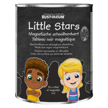 Rustoleum Little Stars Magnetische schoolbordverf I'ts a kind of mag(net)ic 750ml is een harde, krasbestendige schoolbordverf die magneten aantrekt. Deze verf is een leuke toevoeging aan kinder- en speelkamers maar is ook toepasbaar op andere ondergronden zoals hout, metaal en gips.