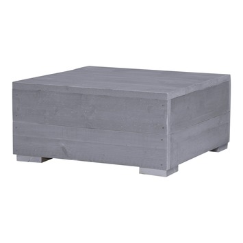 De neutrale grijze kleur geeft de tafel een moderne uitstraling, terwijl het natuurlijke steigerhout zorgt voor een robuuste look. Bovendien wordt deze salontafel volledig gemonteerd geleverd, waardoor je direct kunt genieten van een stijlvolle en functionele aanvulling op je buitenruimte.