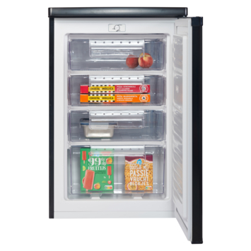 De Salora FRT910B diepvrieskast biedt een stijlvolle en functionele oplossing voor het invriezen van voedsel. Met een inhoud van 91 liter en 4 transparante lades, is deze vrijstaande vriezer perfect voor kleinere ruimtes zoals appartementen of kantoren. De temperatuur kan eenvoudig worden ingesteld van -12°C tot -20°C met de handige draaiknop. Deze vriezer heeft een laag geluidsniveau van slechts 40 dB en is voorzien van een omdraaibare deur voor extra flexibiliteit in plaatsing.