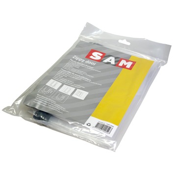 Een SAM stofdeur (zippy door) is ideaal voor het tijdelijk afdichten van een deuropening bij klus, bouw,- en verbouwactiviteiten waarmee stof buiten de werkzone wordt voorkomen.Deze stofdeur is gemaakt van een zware kwaliteit folie met polyester rits zodat je gemakkelijk toegang tot de werkruimte hebt. De stof-deur kan eenvoudig met een zelfklevende (masking) tape op het kozijn van de deuropening geplakt worden. Bijkomend voordeel, deze stofdeur is herbruikbaar. Kortom; de zippy door stofdeur is een onmisbaar hulpmiddel tijdens je klus werkzaamheden zoals bijvoorbeeld schuren, schilderen, verven, stucen, egaliseren, tegelen, voegen en boren.
