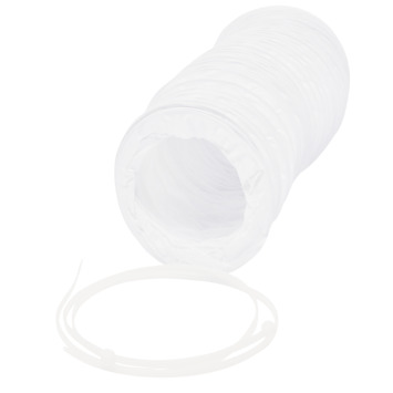Flexibele witte pvc buis die wordt gebruikt voor luchttoevoer en -afvoer van ventilatiesystemen en wasdrogers. Koppel de buis aan de slangaansluiting van bijvoorbeeld je wasdroger en leg de slang naar buiten. Op die manier zorgt de pvc buis voor de aanvoer van frisse lucht en de afvoer van vochtige lucht. De buis is bestand tegen temperaturen van -10°C tot +80°C.