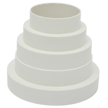 De verloopstuk 80-150 mm van Sanivesk is universeel toepasbaar om diverse buizen (zoals luchtbuizen) op elkaar aan te sluiten. Dit verloopstuk is geschikt voor buizen met een diameter van 80, 100, 120, 125 of 150 millimeter. Het ronde verloopstuk is gemaakt uit witte pvc en te bevestigen met klemmen.